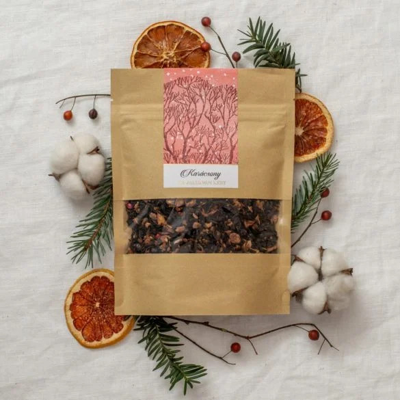 A Bazsalikomos Kert 100% természetes alapanyagokból készülő teái családi receptek alapján, gondos, hozzáértő kezek alatt készülnek. A Bazsalikomos Kert Karácsony teát Mariann az adventi hangolódás idejére és az ünnepekre álmodta meg. A teát a téli fűszerek mellett a rózsabors és a borókabogyó teszi igazán izgalmassá. Engedd, hogy magával ragadjon a Bazsalikomos Kert különleges világa, kényesztesd magad vagy lepd meg szeretteid Mariann páratlan teáival!