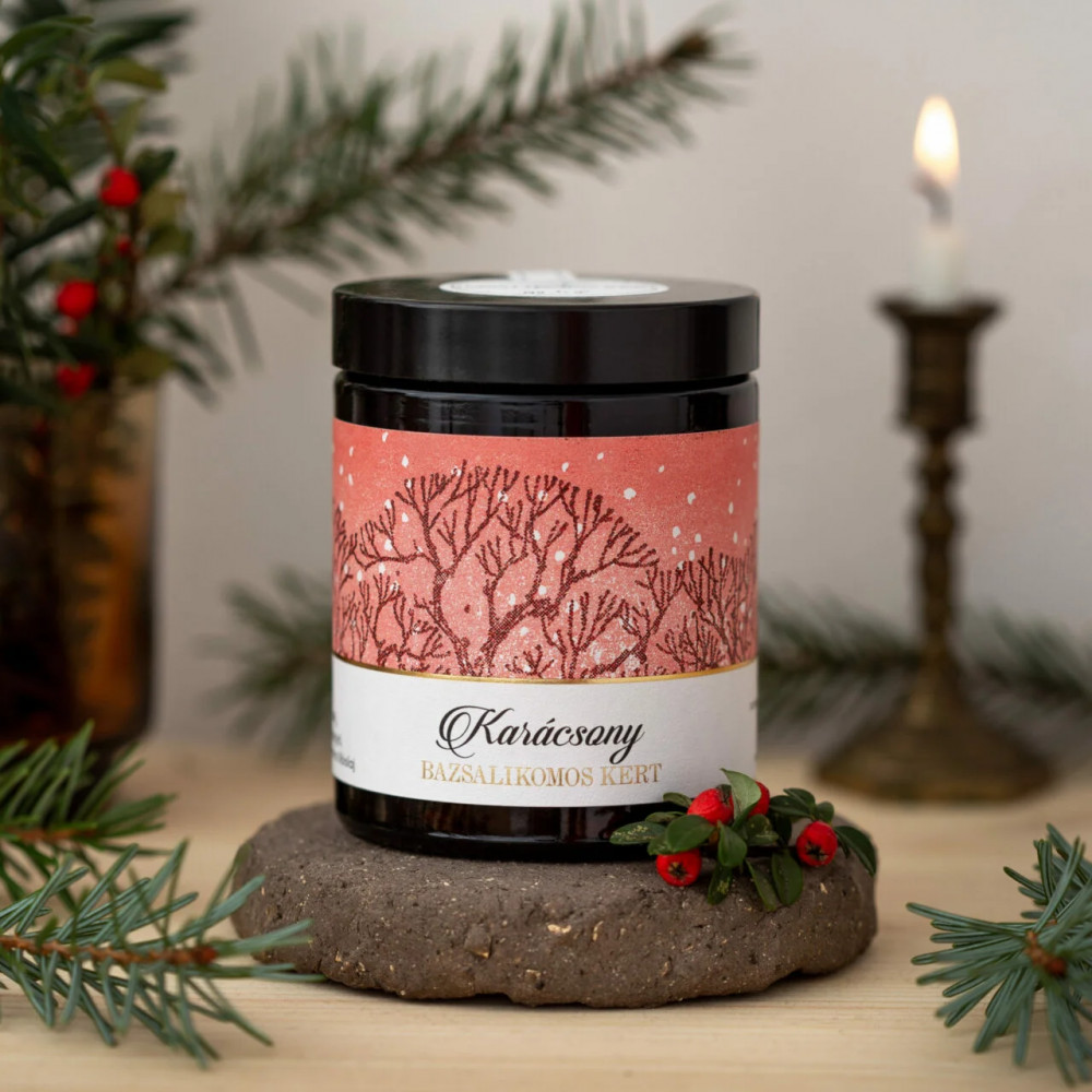 A Bazsalikomos Kert 100% természetes alapanyagokból készülő teái családi receptek alapján, gondos, hozzáértő kezek alatt készülnek. A Bazsalikomos Kert Karácsony teát Mariann az adventi hangolódás idejére és az ünnepekre álmodta meg. A teát a téli fűszerek mellett a rózsabors és a borókabogyó teszi igazán izgalmassá. Engedd, hogy magával ragadjon a Bazsalikomos Kert különleges világa, kényesztesd magad vagy lepd meg szeretteid Mariann páratlan teáival!