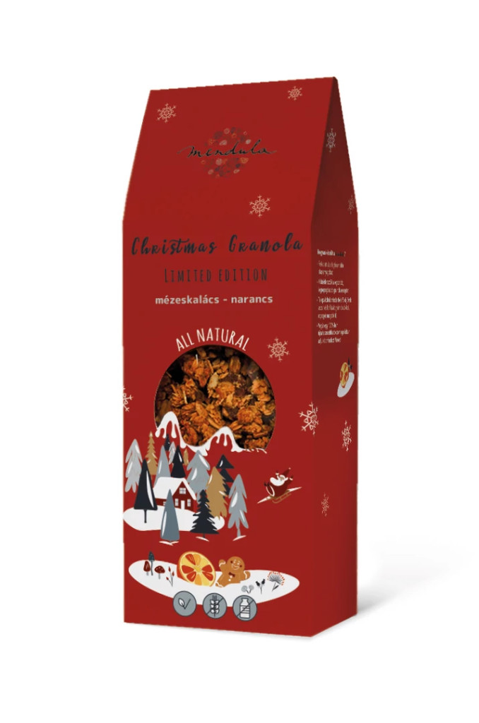 A Mendula alapelve, hogy nem tesznek olyan összetevőt a termékeikbe, amit a saját gyerekeiknek nem adnának. A Mendula Karácsonyi dobozok a karácsonyi vásárok hangulatát hozzák el neked. Ebbe a gyönyörű, téli hangulatú díszdobozba a Mendula csapata csupa olyan karácsonyi hangulatot idéző terméket válogatott össze, ami mindenkinek mosolyt csal az arcára. Mendula Karácsonyi dobozban rejlő finomságok többféle diéta és ételérzékenység esetén is fogyasztható: vegán, gluténmentes, laktózmentes, paleo és tejfehérjementes termékek. Lepd meg magad vagy szeretteid egy igazán egyedi ajándékkal, kompromisszumok nélkül!